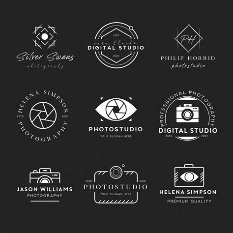 Now that you know what makes a great photography logo, let's look at some examples to inspire your own design. Each of these logos features a unique design that captures the essence of the brand.